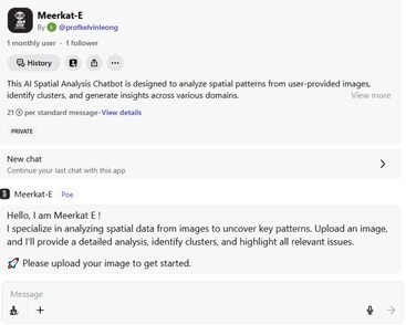 Meerkat E was built using Gemini 2.0-Flash as the foundation for its large language model (LLM), with carefully designed prompts to guide its analysis of uploaded images. In practice, developers and analysts can create their own AI-powered chatbots by selecting their preferred LLM and customizing prompts to suit their specific needs.