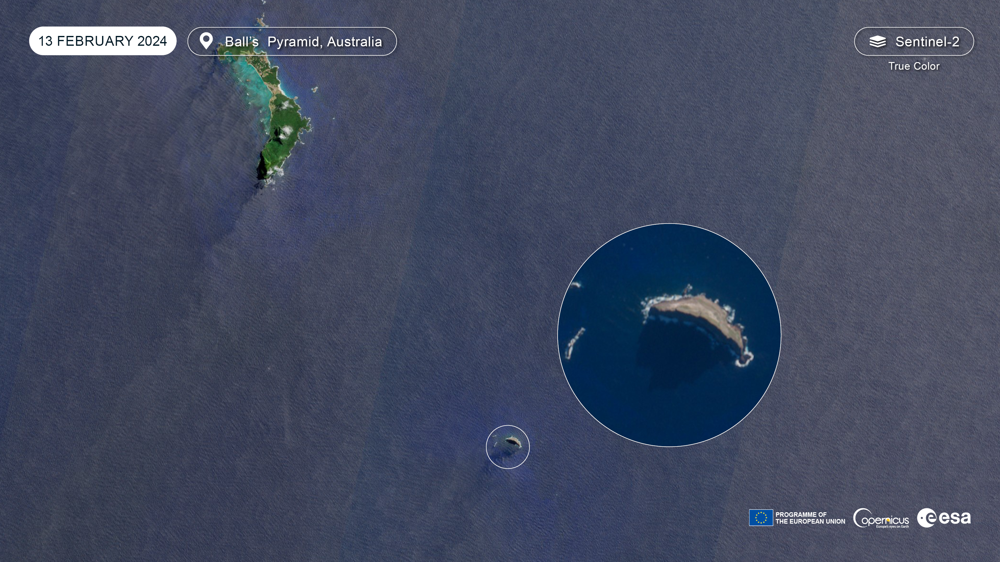 The Sentinel-2 image shows Ball's pyramid in Australia on 13 February 2024.Take a look yourself via the Copernicus Browser.